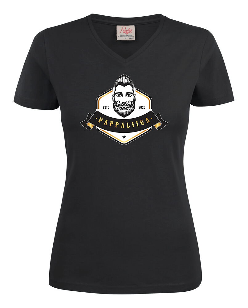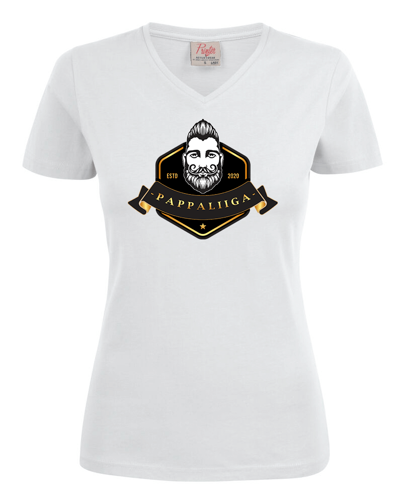 Pappaliigan virallinen naisten V-kaula-aukkoinen T-paita – sporttinen ja istuva malli, joka sopii täydellisesti aktiiviseen elämäntyyliin.